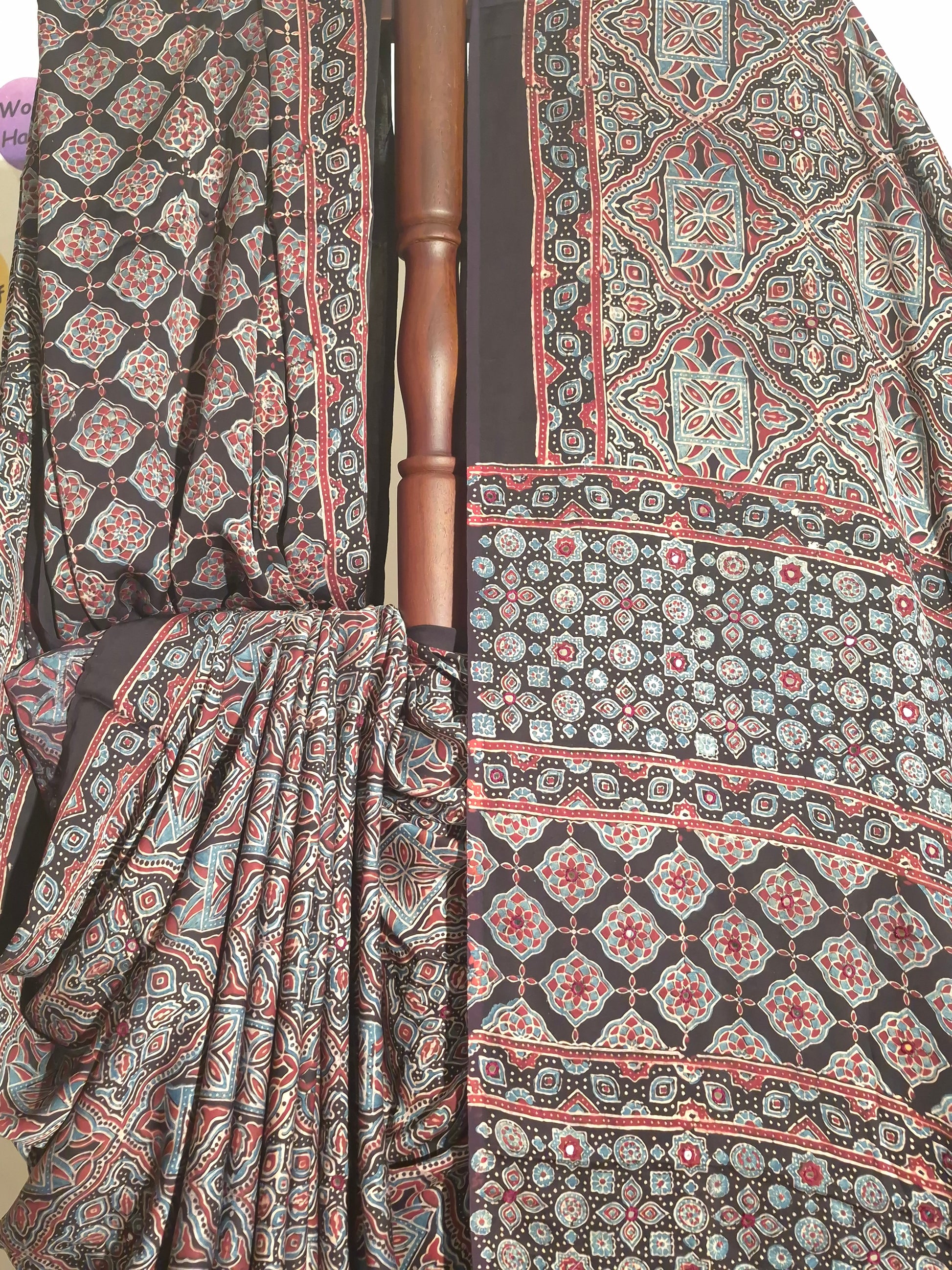 - Technique: Handblock Printed (Ajrakh)